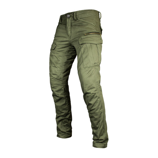 The US Air Force flight suit served as the model for the John Doe Stroker Cargo Pants, created specifically for motorcycle riding. Asymmetrical thigh pockets and a contemporary slim fit give them a molded fit and plenty of room for riding. They achieve the right balance between protection and wearer comfort thanks to a lining composed of the revolutionary XTM-Fiber® (fiber technology made with DuPontTM Kevlar®, Coolmax® and Lycra®). On every ride, whether in the city or on long journeys, the wearer receives the best possible protection in the event of extreme weather conditions and collisions thanks to the thinness of the material, great flexibility and waterproofness. The CE certification for the Cargo Stroker XTM® is AA (EN17092-3:2020) and comes with knee and hip protectors to keep you safe in all circumstances.