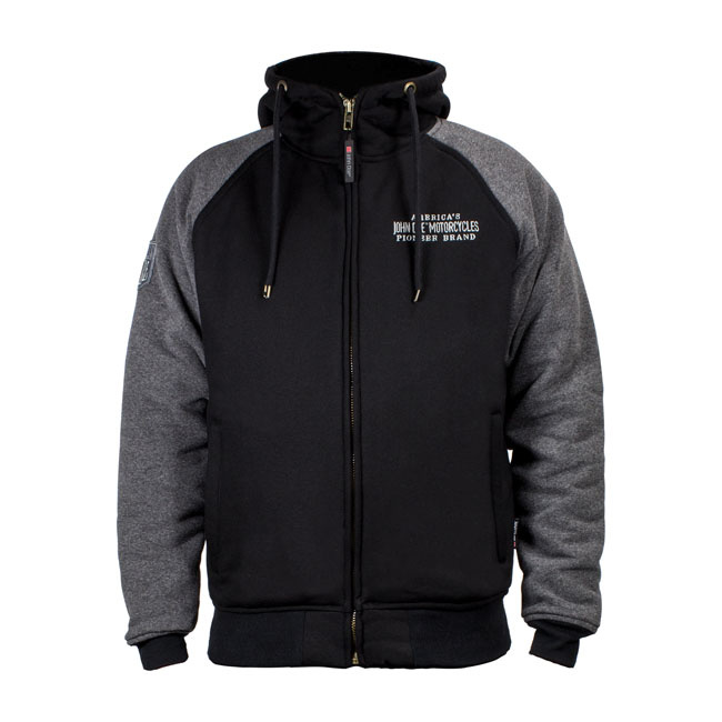 This breathable hoodie is composed of 100% cotton twill on the outside and has a lining made of XTM-Fiber® (a fibre technology made from DuPontTM Kevlar®, Coolmax®, and Lycra®) for maximum comfort and safety while riding a motorcycle. On the shoulders, elbows, and back are armour pockets. The hoodie is CE-approved by TÜV Rheinland and has a YKK zipper, inside and outer storage pockets. Armor is not included, but sold separately.