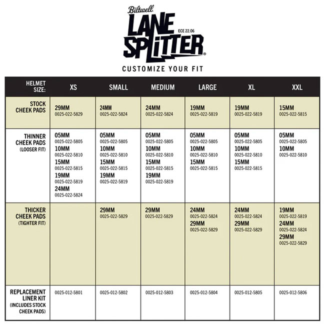 Biltwell | Lane Splitter Helmet Liner Set + Pads