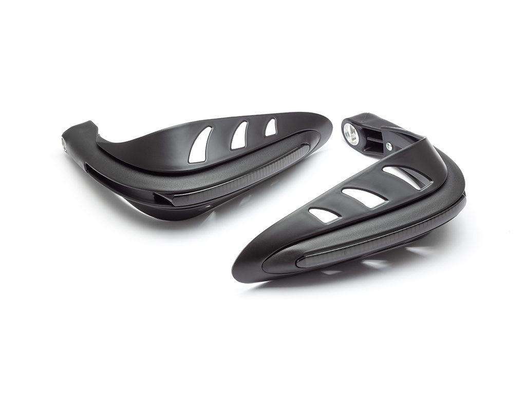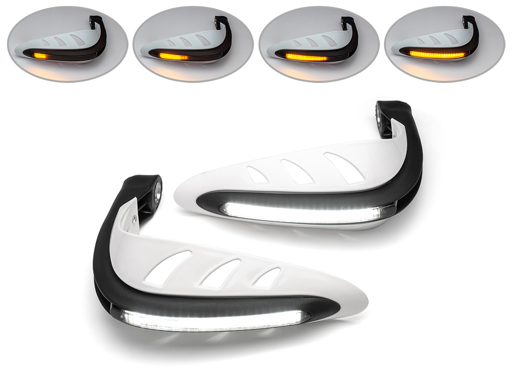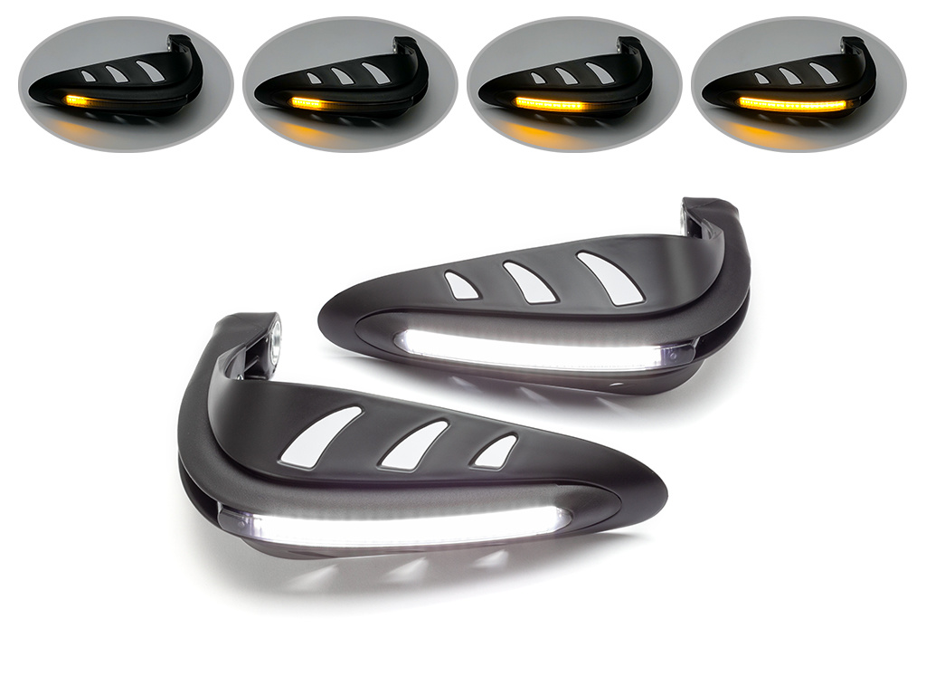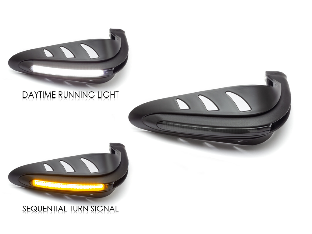 These high quality Integrated Handguards are made from durable plastic and feature super bright LED Daytime Running Lights and Sequential Turn Signals with Switchback feature. Improve your visibility on the road whilst adding style and function. These Integrated Handguards are our exclusive design.