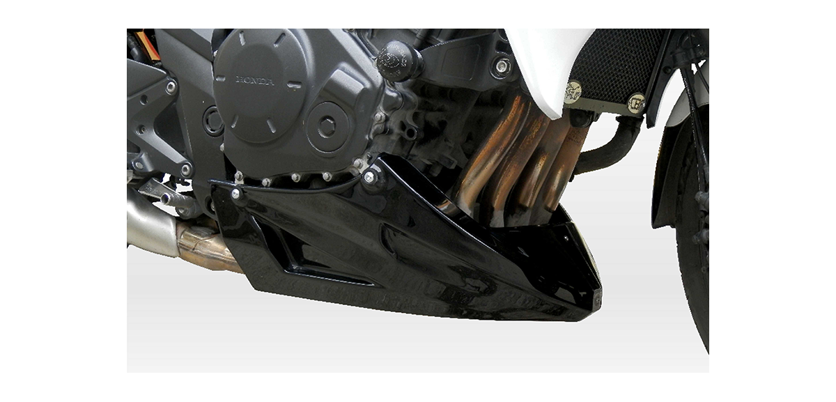 This lower fairing protects against mud and other things that would otherwise get on the engine or exhaust. The engine spoiler is made of ABS plastic in glossy black with an acrylic coating and UV protection.