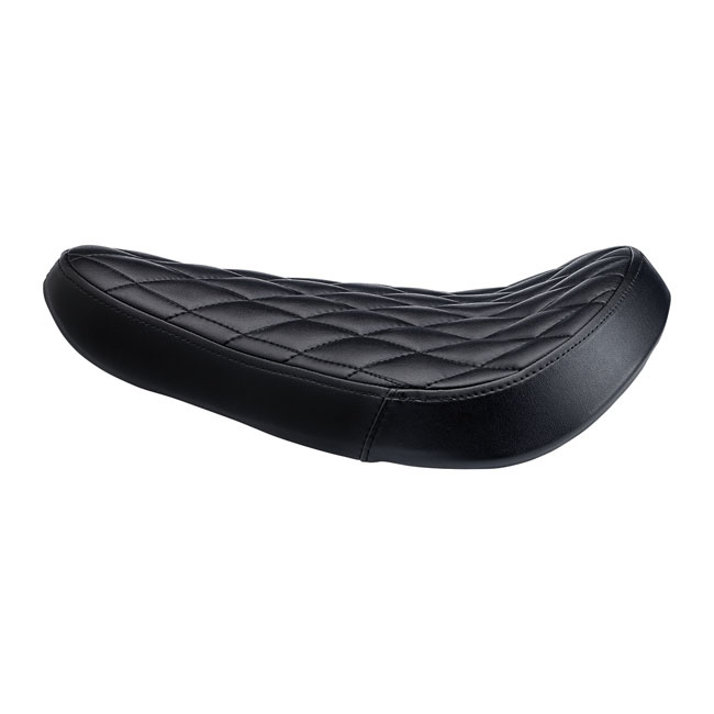 Black. With Diamond stitch heavy duty vinyl upholstery, sewn with polyester threads. Seat pan is heavy duty stamped steel with a gloss black electroplated finish. A slight raise in the rear and a curved nose section make it a spot-on classic chopper solo seat. The carriage bolt system is adjustable, allowing more installation flexibility.