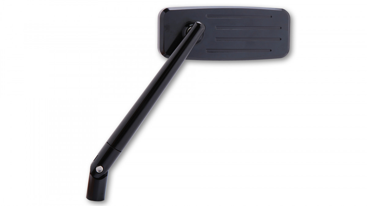 High quality CNC-milled fairing mirror in rectangular shape with a black anodized aluminium head. Thanks to the use of a second joint on the handle, there are additional adjustment possibilities for your safety. Including extra adapter M10 x 1,25 mm with left hand thread for Yamaha. Can be used for left and right side. Please order adapter set separately!