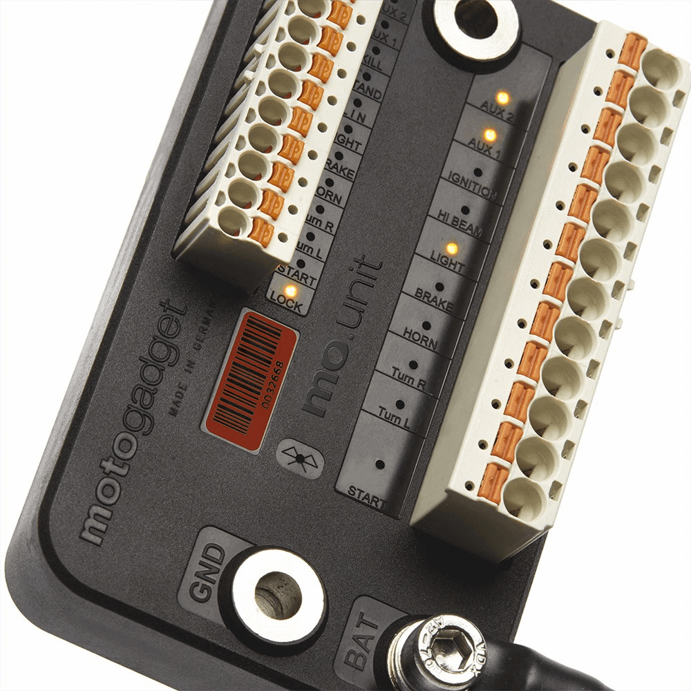 The mo.unit basic is the digital control unit for your motorbike – the heart of the entire on-board electrical system. It can be operated using buttons or using conventional handlebar switches. It controls all necessary components on the vehicle while also performing fuse functions.