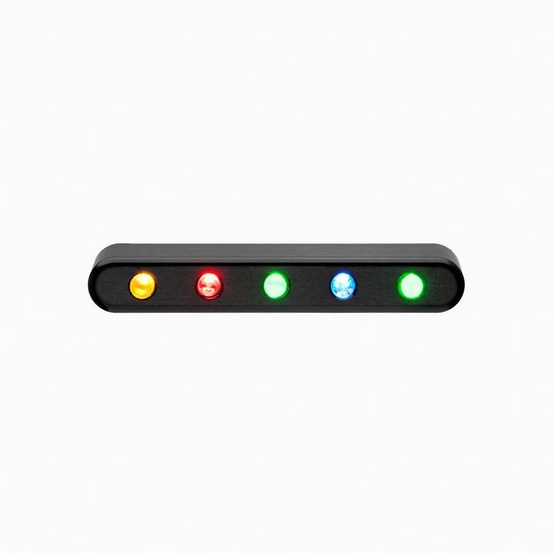 It is extremely compact and features 5 coloured LEDs. Series resistors are integrated.