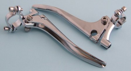 Boxed Pair of 7/8" Plain blade clutch/brake levers. (1-1/16" pivot centres) Premium Quality chrome plate & fixing screws.