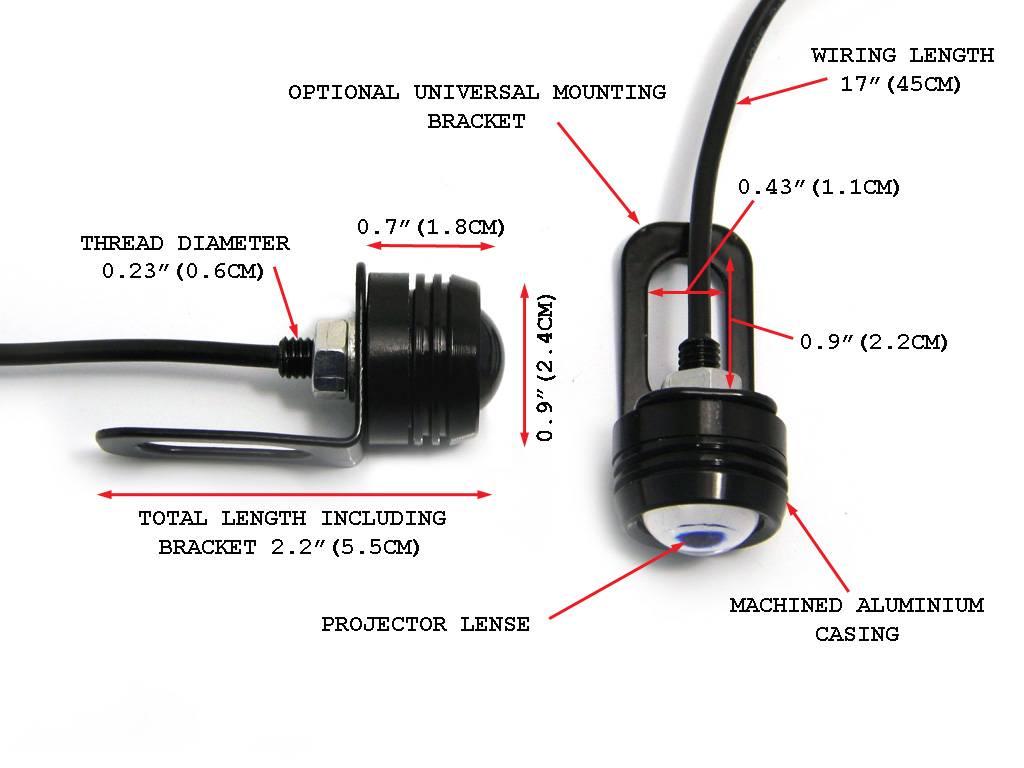 Pair of LED Tail Light Universal. High-quality 23 mm diameter with a red LED light, which can be mounted into the number plate and doubled up as bolts or can sit on any flat surface like a tail or brake lights.