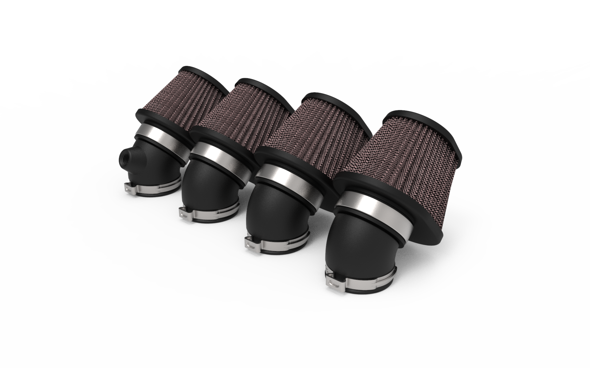Special kit developed for the BMW 16-valve K-series (Note: this will not work on 8-valve models that have an AFM inside the airbox). This kit will remove the entire airbox and replaces it with 4 top quality open air filters by DNA. The kit comes with the following parts: