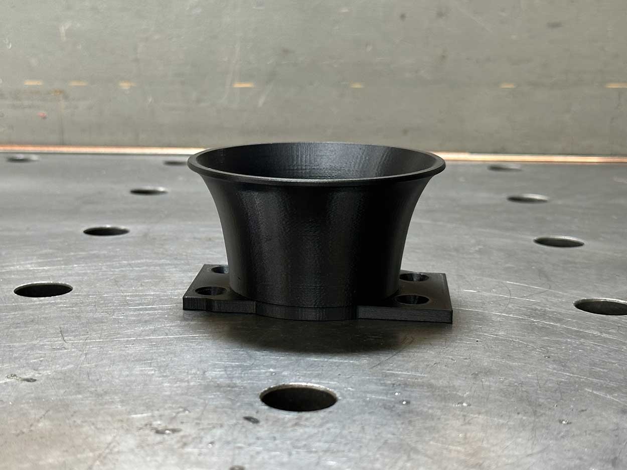 The air intake is designed to form a perfect transition from the square to a round flange and maintain a