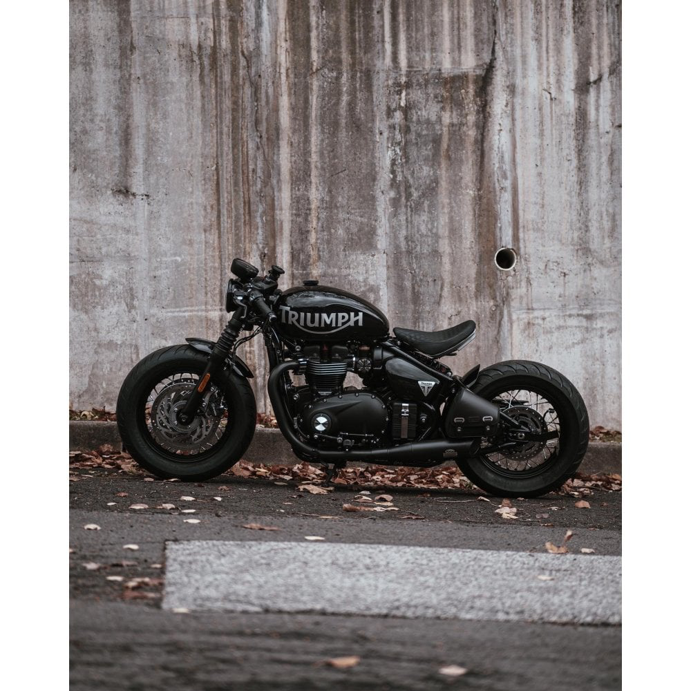 Triumph Bobber suits the clear look without extra structure or coverage. So as our Motone RAZOR | Triumph Bobber Ultra Short Rear Mudguard. It is the shortest rear mudguard for your Triumph available in Gloss Black finish. It is for the most stylish and uncluttered rear end possible, while still providing some protection for the bike's electronics and airbox.