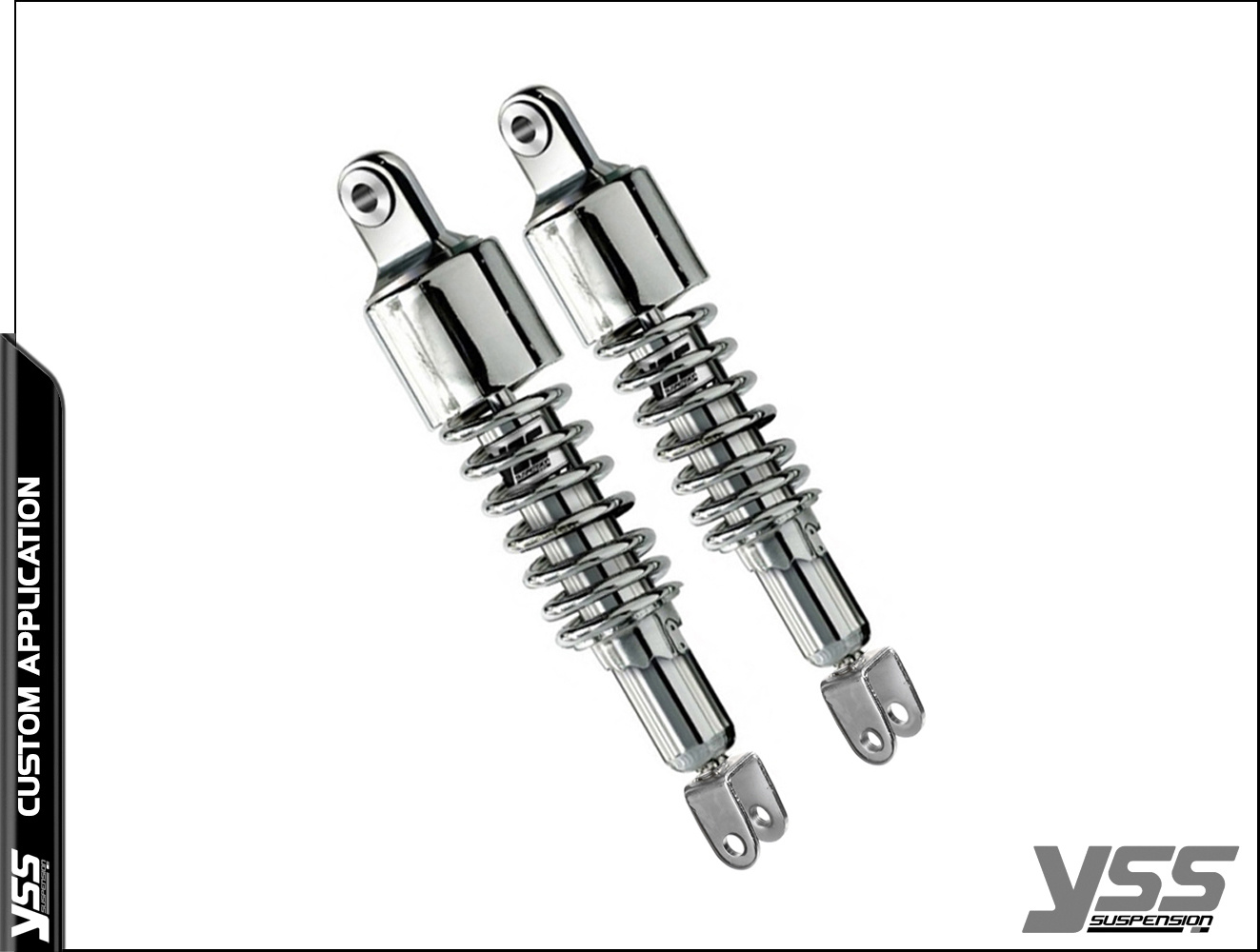YSS supplies the shock absorbers in the lengths 310mm, 320mm, 335mm en 365mm and are supplied as standard in a chrome version with black springs
