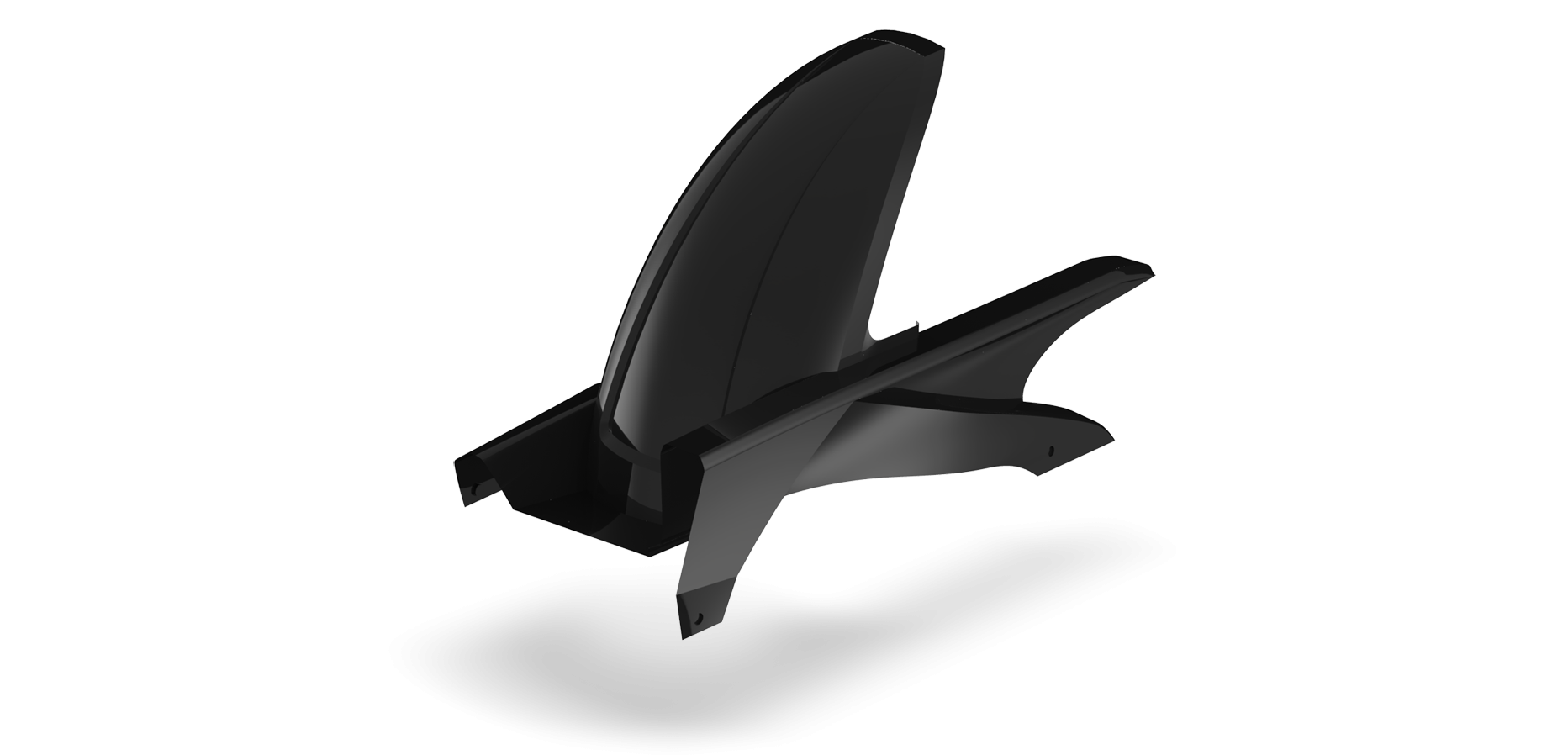 It is made of ABS plastic in glossy black, with an acrylic coating and UV protection. The rear mudguard can be easily mounted, the ABS plastic is also very easy to paint without further treatment.