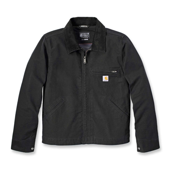 The Carhartt Relaxed Fit Duck Detroit Jacket is crafted from stretch soft duck fabric with a cotton-elastane lining for comfort and durability. Featuring a corduroy-trimmed collar, multiple zippered pockets and adjustable cuffs and hem, it’s designed for functionality and style in tough environments