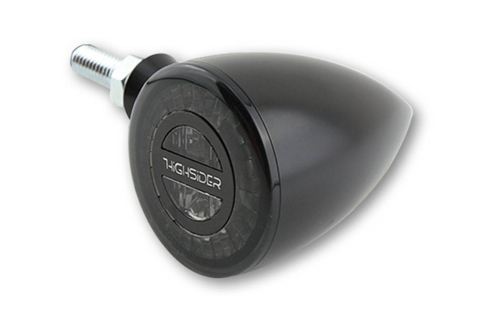 HIGHSIDER ROCKET BULLET LED tail light, brake light, turn signals unit with aluminium body and tinted glass.