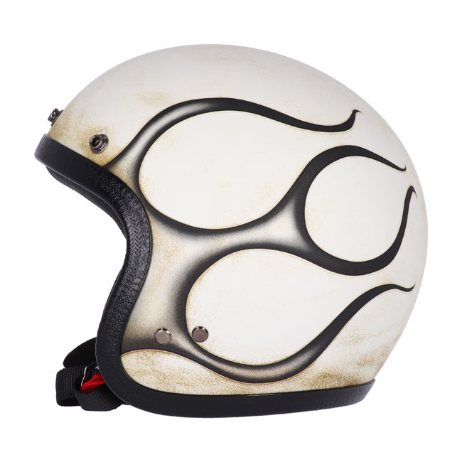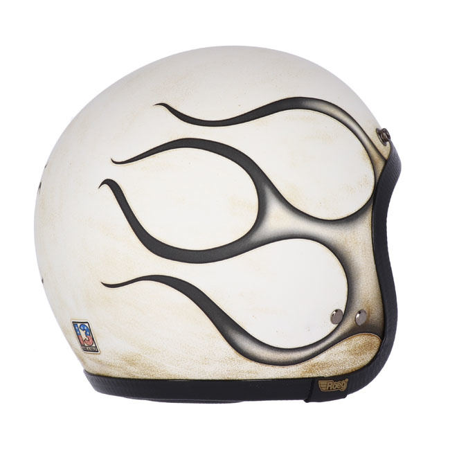 The old school kid of ROEG®; the JETTson in collaps with 13 1/2 gives the Crash Hat helmet. The helmet has a handmade Fiberglass shell in six sizes with super-comfortable knitted liner sits nice and low on your head. Tested and apporved to the highest ECE-R22.05 standards. Complete with padded chin strap and classic double d-ring closure, plus integrated snaps for visors/shields. The wide, rough trim give the JETTson that distinguished 70s vibe. Including a black peak