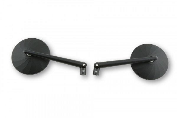 High-quality round mirror with an adjustable stem and plastic head. For your safety, the mirror is supplied with a second hinge, so that you can make additional adjustments. The pattern on the back of the mirror creates a good-looking finish. The mirror is ECE-approved.
