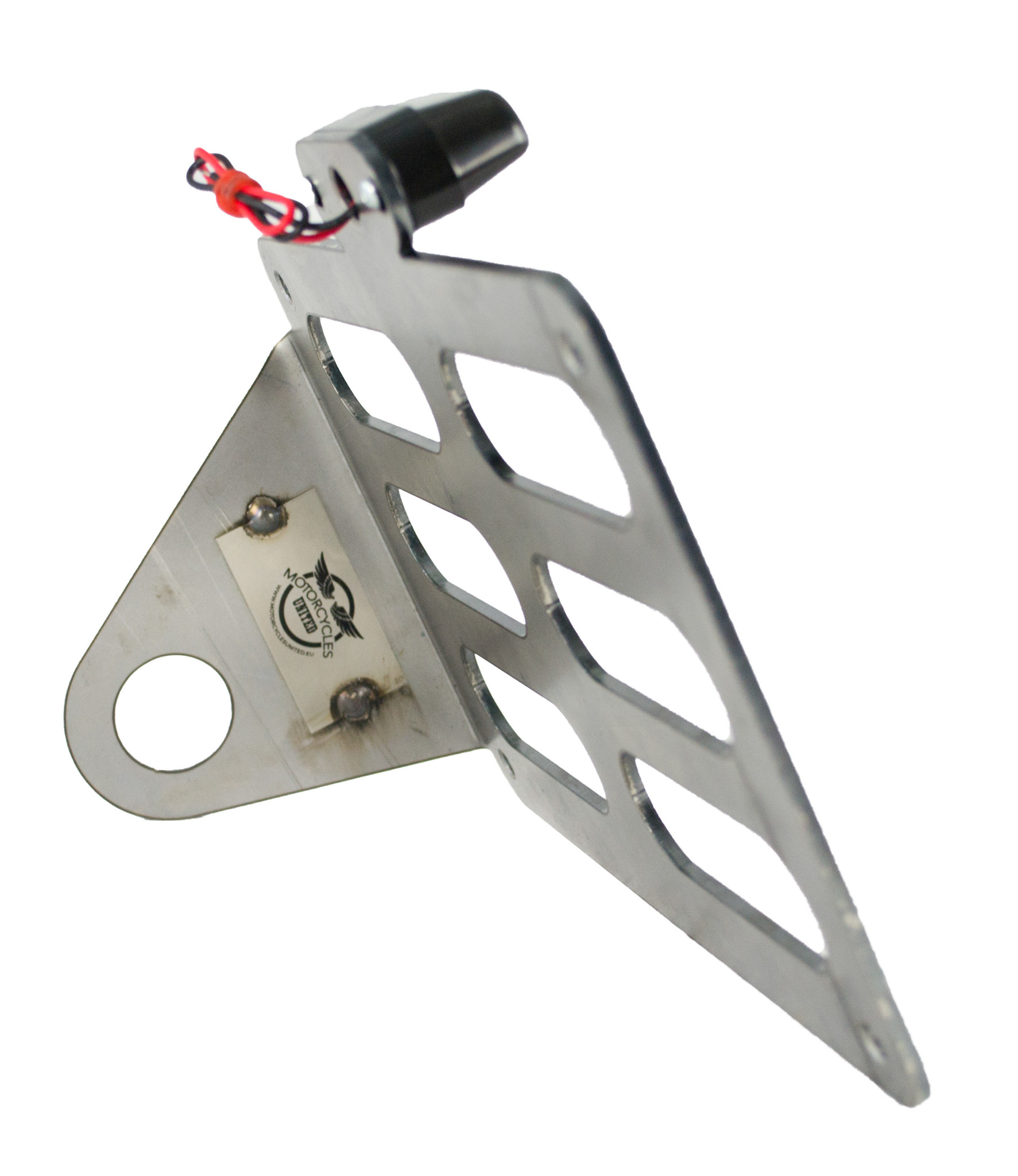 This Side Mount is made for Dutch and Belgian licence plates (210 mm x 140 mm). It is made of 5 mm steel.