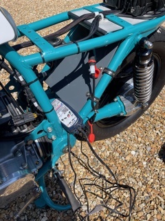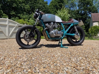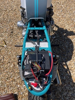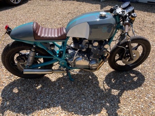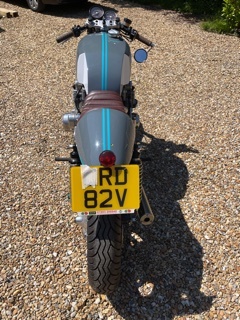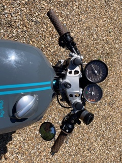 The engine was seized so I needed a build plan. I started the basics myself but soon realised I needed a pro. As a Ducati owner I turned to my good friend and industry icon/guru; Alf at alpha motorcycles Worthing (he would be happy to discuss the project too if needed). I went down to speak to the legend and he agreed to take me and the bike project on. We soon decided I wanted to keep the originality of the engine and controls but with a spin of my own. So what did we do? Alf has done a complete nut and bolt restoration on the engine and every single part on the bike, replacing anything that was needed with genuine parts. I have a file of receipts that total just over 13k. I have chopped the tank back, added a cafe tail with a bespoke brown seat made for me by SM Trimming of Lewes. I have had the frame taken back and custom sprayed in a very marmite teal colour which I love. New Hagon rear shocks to achieve the perfect ride height. The decals (rare motorcycle company) I designed myself just to add the one off look. It has a keyless fob start and bespoke wiring and control system that can be seen in the pics, hidden perfectly under rear tail of the seat. This was designed by a friend who works on the euro fighter so it’s bloody good but no missile systems! It’s wired up to plug straight into a discreet optimiser socket for charging and storage.