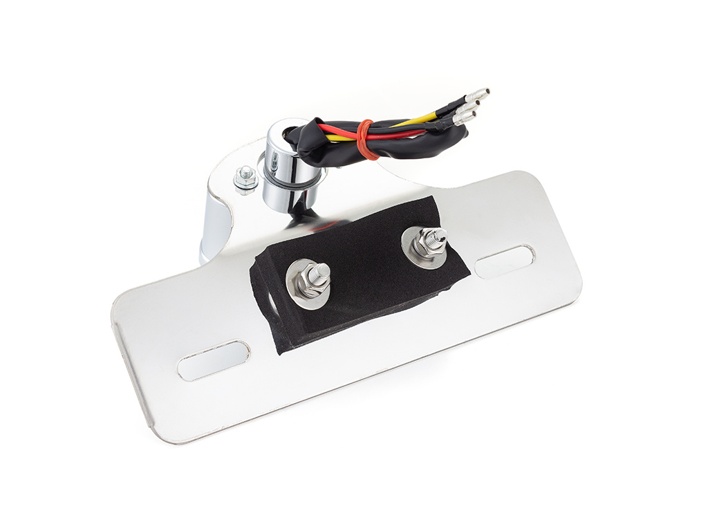 This rear light module "Delaware Chrome" is a complete bolt-on rear, brake and license plate light+holder. For that old school look.