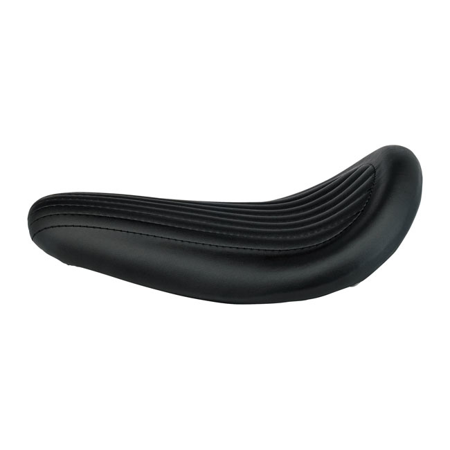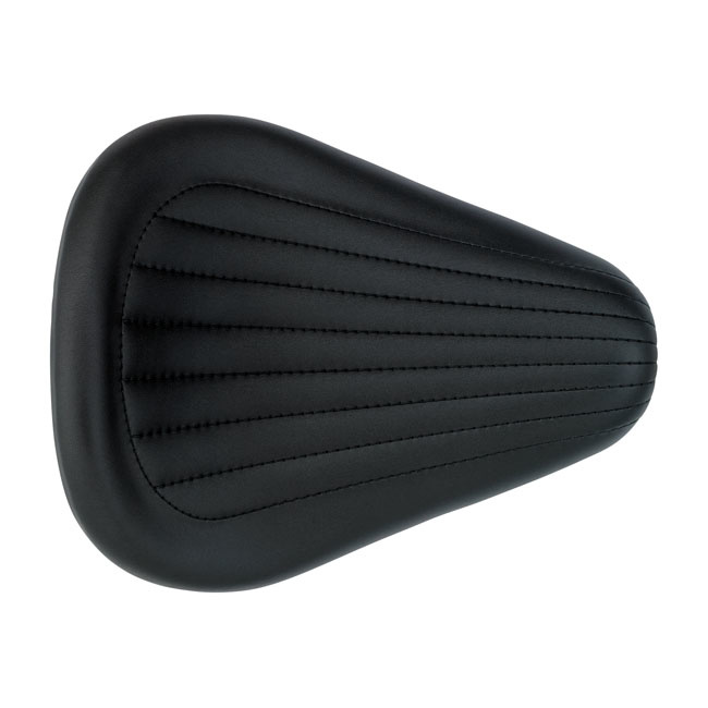 Tuck n' Roll stitched vinyl upholstery. Special sliding carriage bolts make sure you will be able to place the seat spring mounts directly above the mounts on the frame. No warped solo seat springs! Comes with a black electroplated steel pan with reinforcement ribs for strength. The thin closed-cell polyurethane foam layer makes sure your ride height is as low as possible, and is very water resistant.