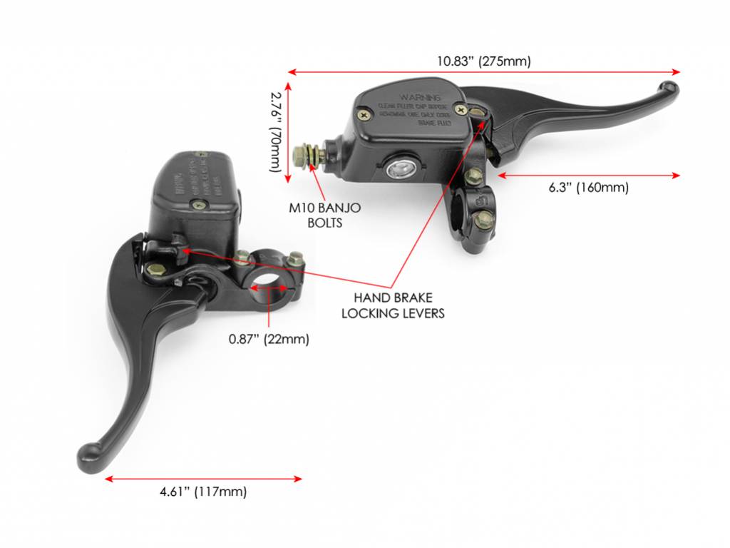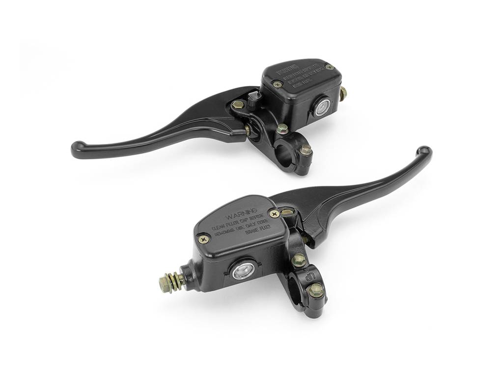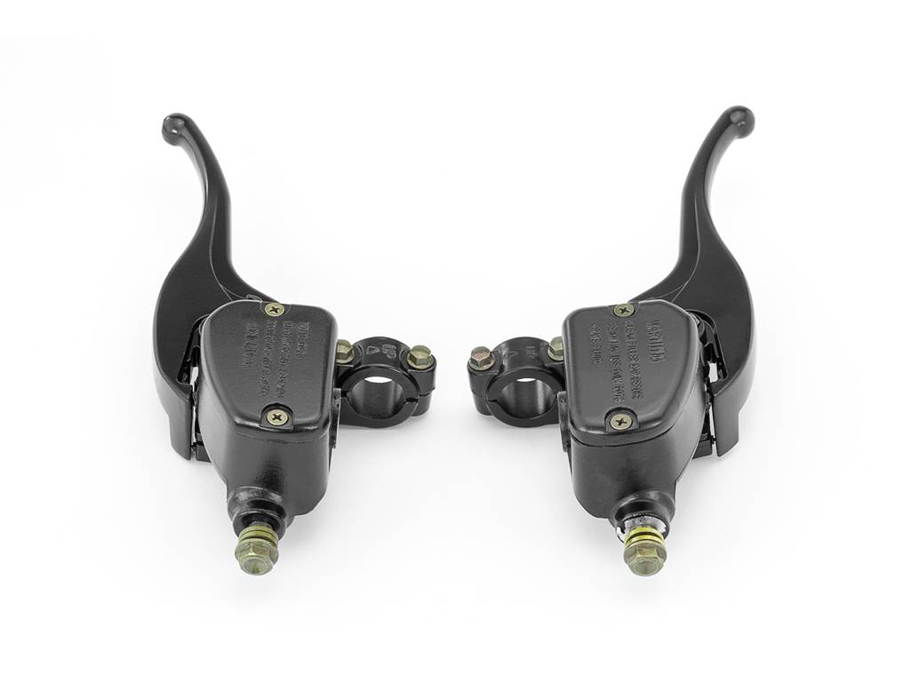 This unique style lever set can be used on most motorcycles with a hydraulic clutch. Both left and right levers come with a hand-brake ratchet style locking lever. Piston Bore Size: 14 mm.