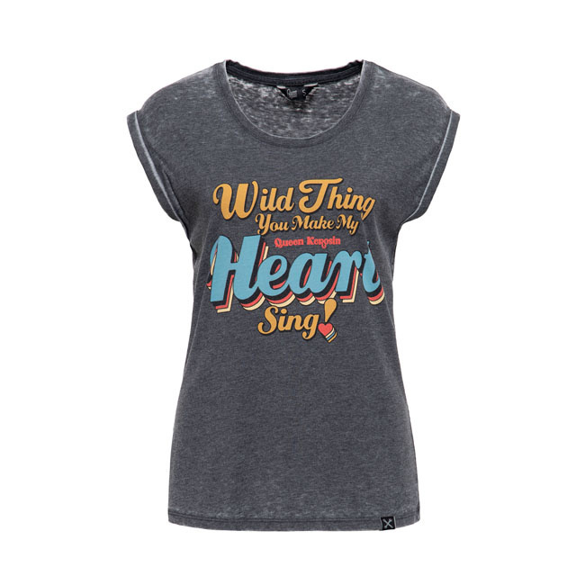 This t-shirt by Queen Kerosin embodies the irrepressible spirit of freedom. The "Wild Thing" sleeveless top brings together the charm of the retro era with a modern twist. The eye-catching print "Wild Thing, You Make My Heart Sing" is a real eye-catcher and speaks to the soul of rebels. Made from a cotton-polyester blend, the enzyme wash t-shirt not only offers a comfortable feel, but also style. Perfect to combine with jeans and boots, this shirt is a must-have for every biker who wants to wear her wild heart on the outside. Show your wild side and let your heart sing loudly with this unique piece from the Queen Kerosin collection.,Size S