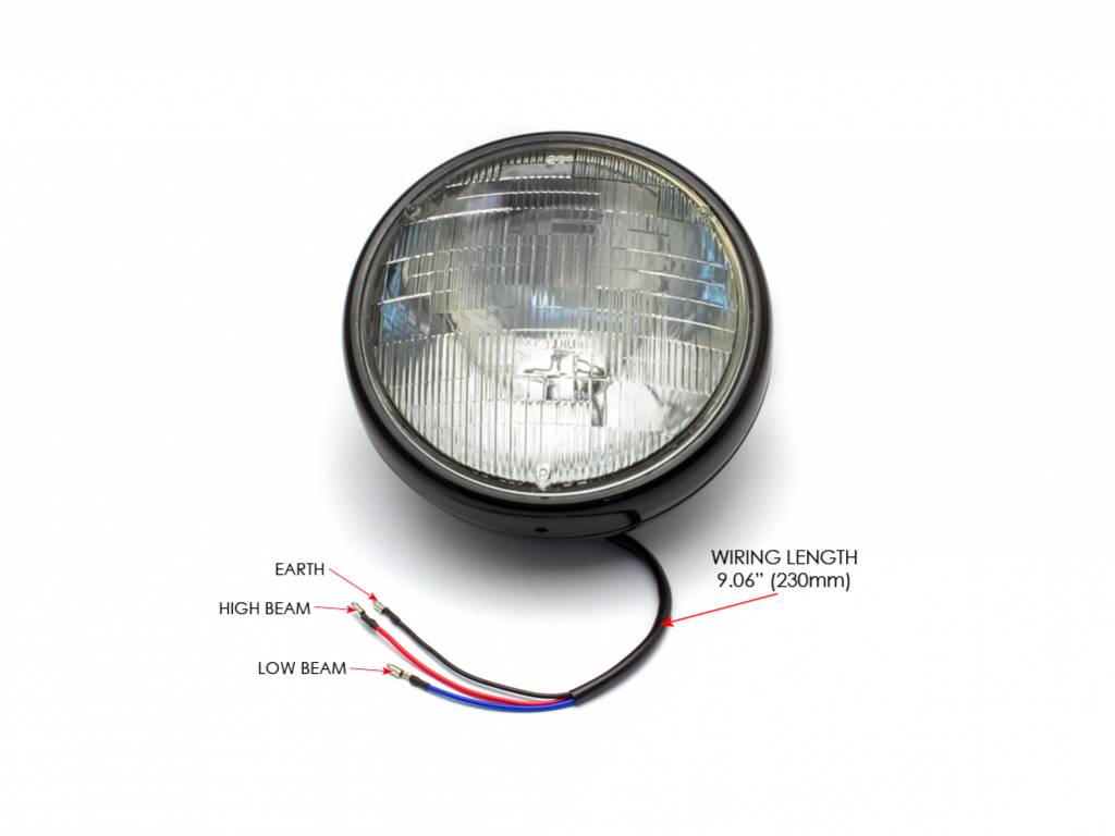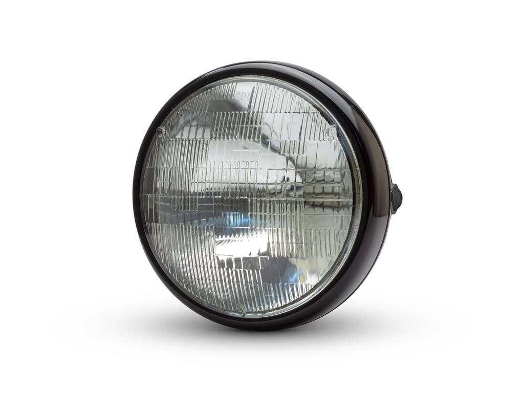 7" Gloss Black Shorty Metal Headlight - 12v / 55w Sealed Beam