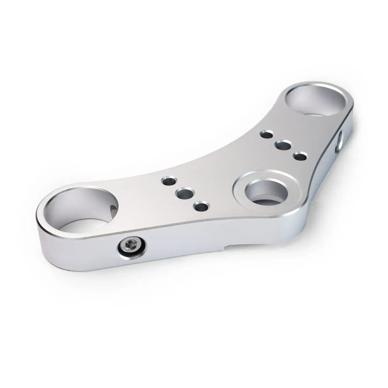 Una sola pieza de aluminio de calidad aeronáutica es mecanizada por CNC para crear esta abrazadera de triple árbol de primera calidad. La abrazadera de triple árbol se somete a muchos procedimientos de tratamiento superficial, como el anodizado, después del mecanizado. El resultado es un acabado satinado pulido, resistente a la intemperie y a los arañazos. Ideal para cualquier proyecto personalizado en el que desee emplear barras, como la construcción de una moto scrambler.