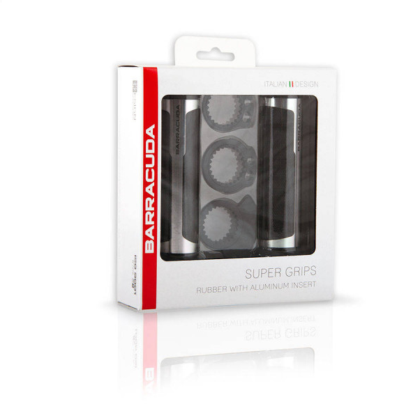 - El mango de goma RACING SUPER GRIP tiene inserciones de aluminio anodizado con un diseño único que lleva la firma BARRACUDA.