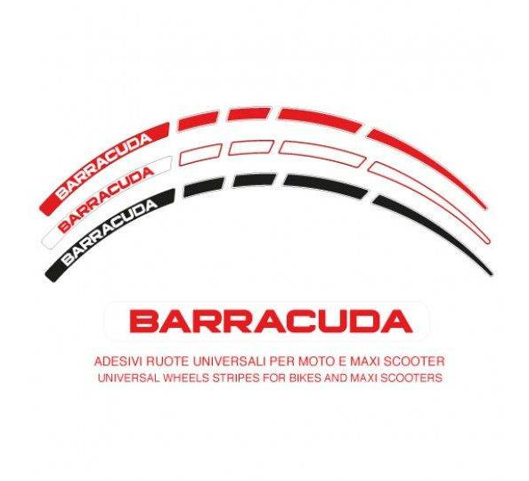 - Para el servicio y la más alta calidad, el KIT BARRACUDA STRIPES para ruedas está compuesto de material 3M. están disponibles en los colores NEGRO, ROJO y BLANCO.