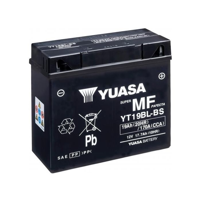 Batería sin mantenimiento YT19BL-BS . Compatible con una gran variedad de motores (ver lista a continuación), es una batería versátil y muy recomendable para motocicletas.