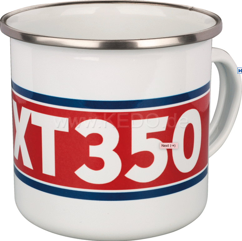 With this beautiful enamel coffee mug, you will show your love for the Yamaha XT350! A must for every vintage Yamaha fan.