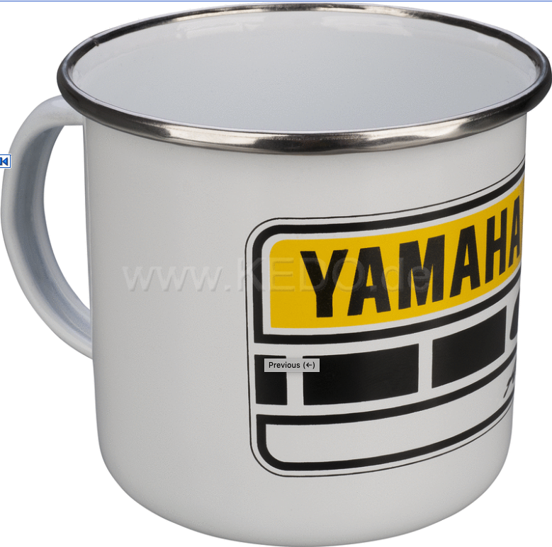 With this beautiful enamel coffee mug, you will show your love for Yamaha! A must for every vintage Yamaha fan.