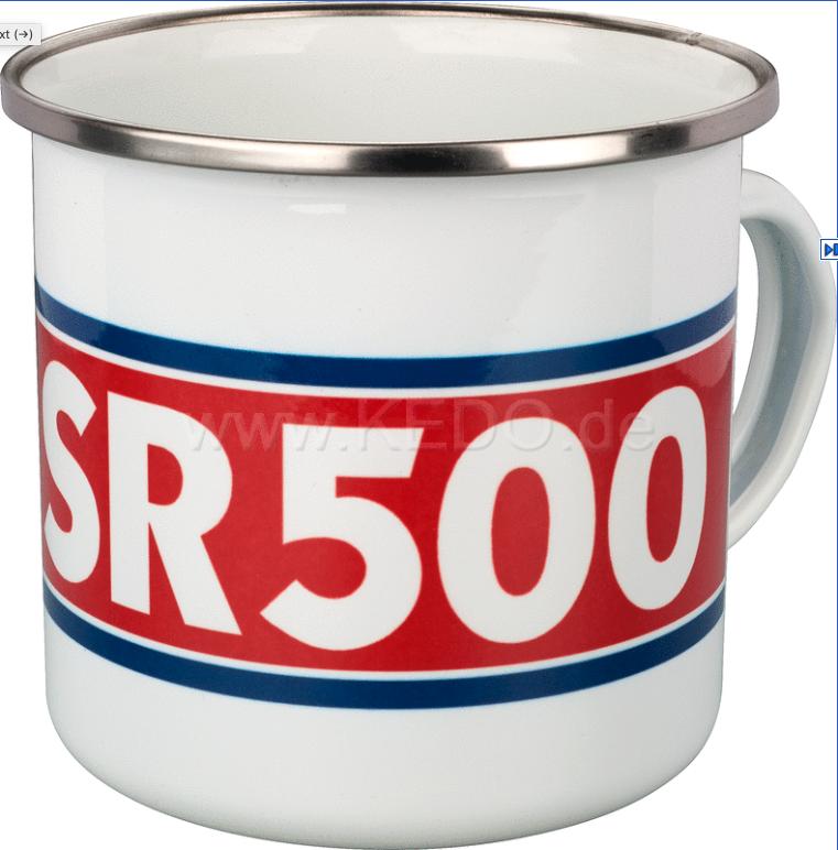 With this beautiful enamel coffee mug, you will show your love for the Yamaha SR500! A must for every vintage Yamaha fan.