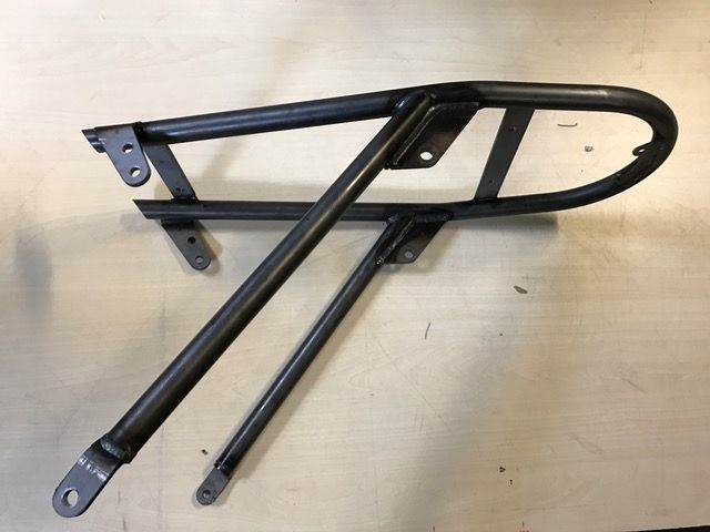 The BMW R80 frames are made of steel and already have a fender/rear light mount on them as well. You can paint or powder coat them in the colour you want.