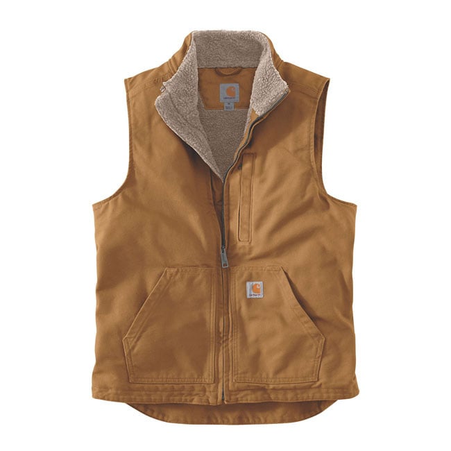 El chaleco Carhartt Sherpa-Lined Mock-Neck le mantiene caliente y protegido. Hecho de lona de algodón 100% y forro polar sherpa suave para la comodidad de todos los días. Cuenta con tecnología resistente al viento y múltiples bolsillos seguros.
