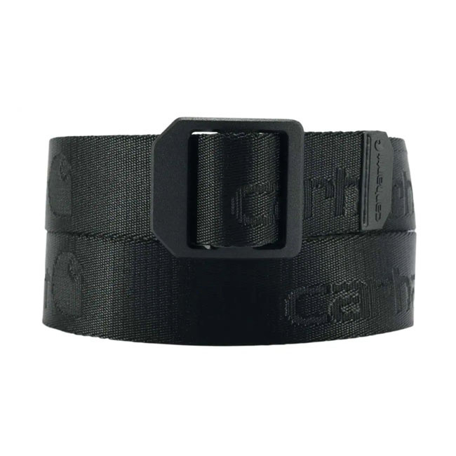 Cinturón Carhartt de nailon con cierre de escalera, color negro.