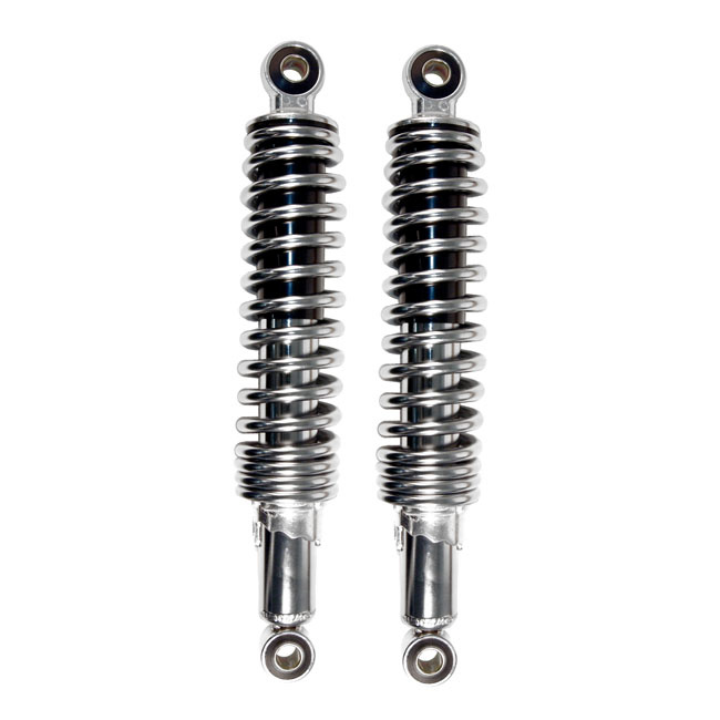 OEM Style Shocks Chrome Suzuki GT500 / T500. Chrome springs. 5-position pre-load adjustable. OEM style reproduction rear shock absorbers for stock style replacement.