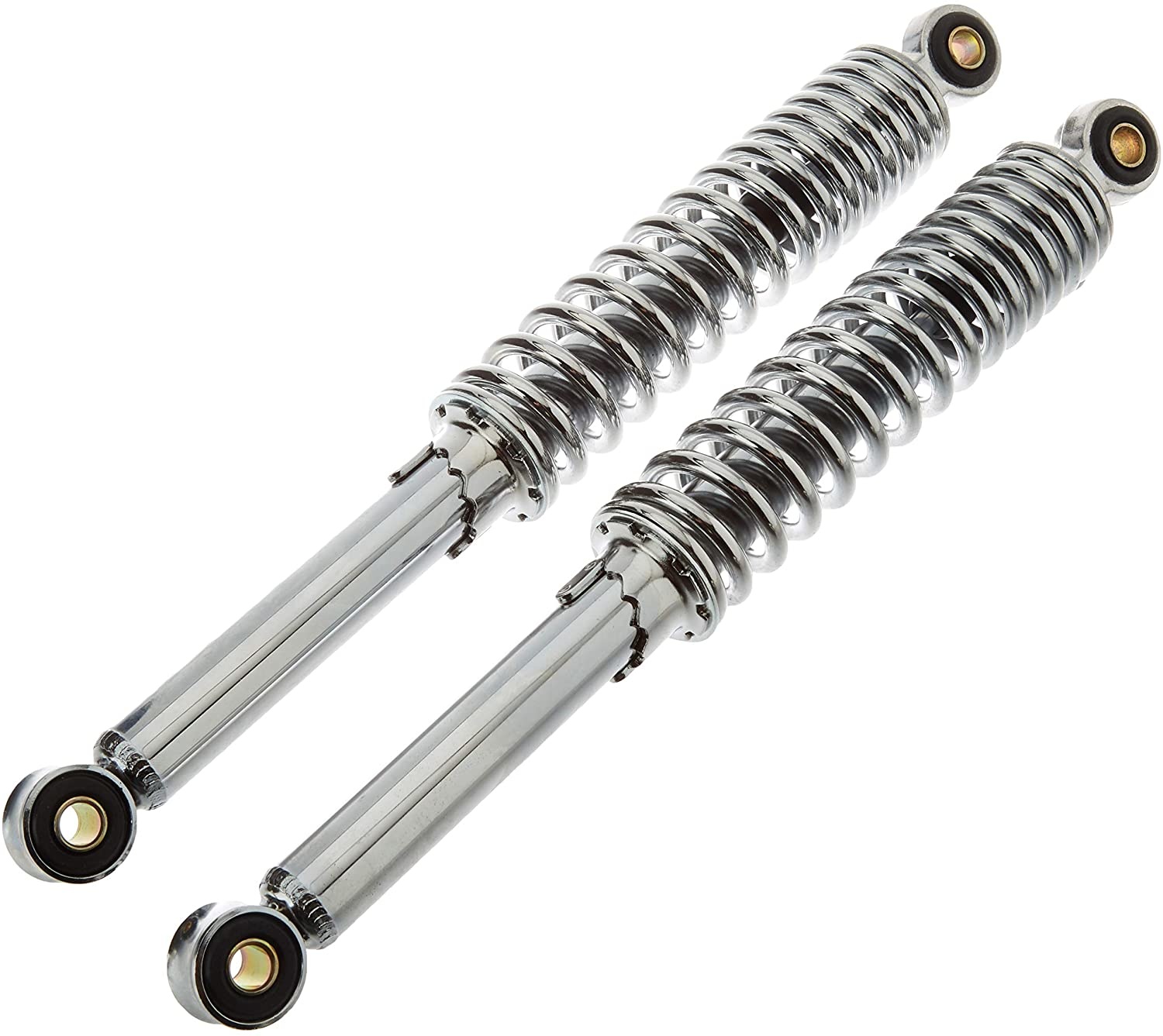 Shock absorber set 280mm. Color choice from chrome and black. These shock absorbers are for mopeds with a low weight, not suitable for motorcycles.