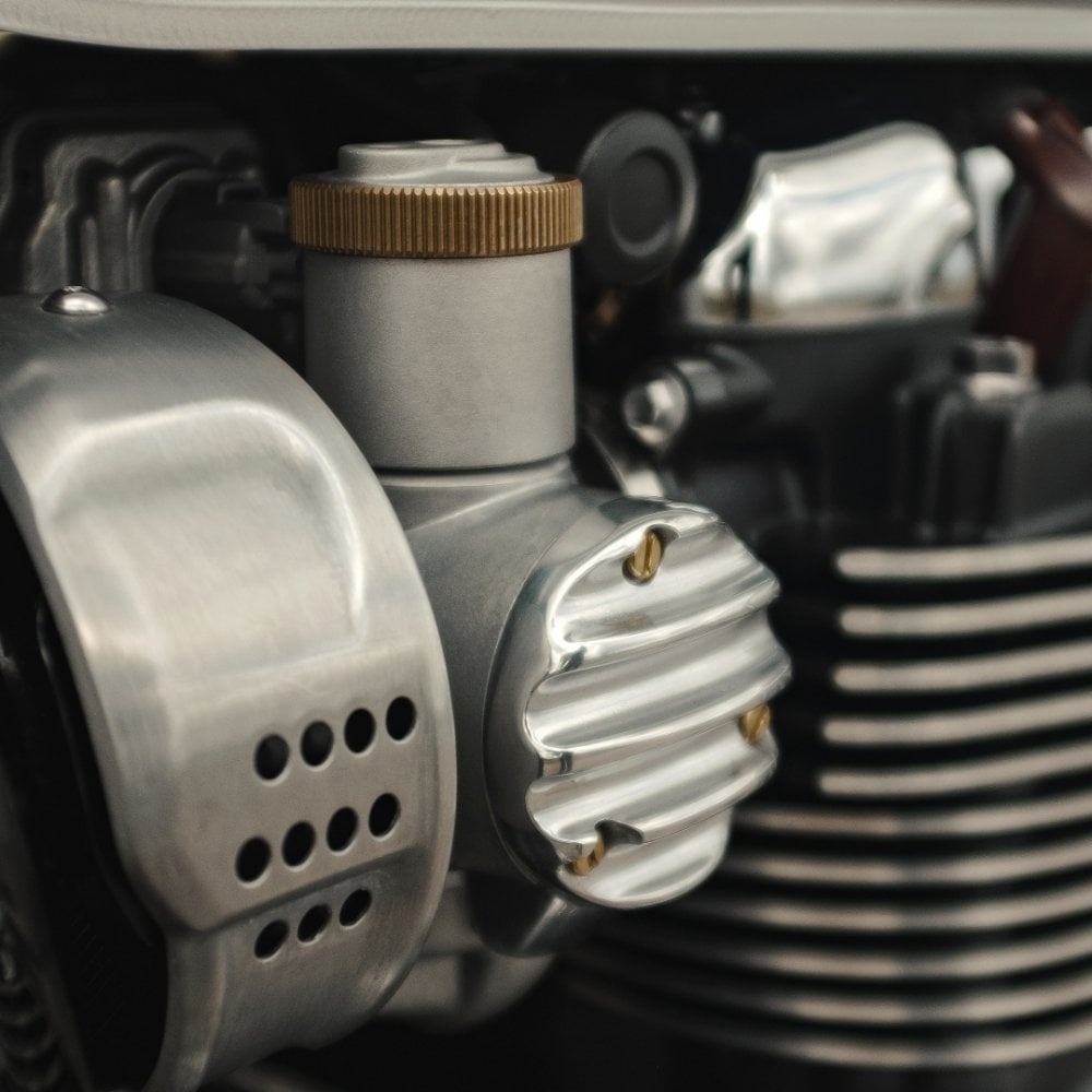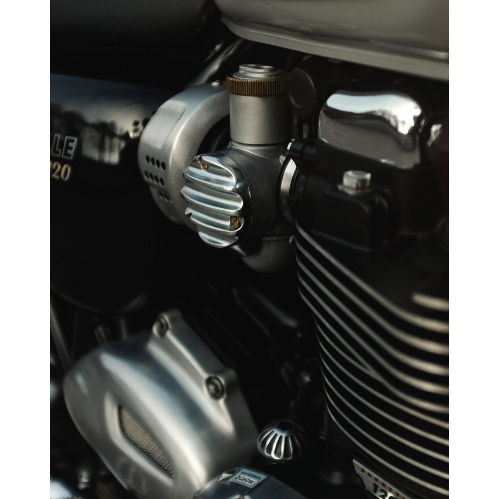 Motone trató de proporcionar el mismo aspecto que el original monobloque Amal carbohidratos, ya que es la inspiración para el aspecto del cuerpo del acelerador que Triumph ha empleado en estos motores. Tps Carb / Tapa del cuerpo del acelerador viene en acanalado / diseño de aletas y tiene 6 tornillos de latón similares a los encontrados en los originales monobloque Amal carbohidratos.