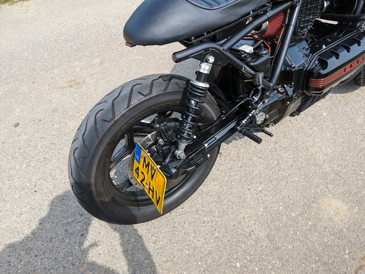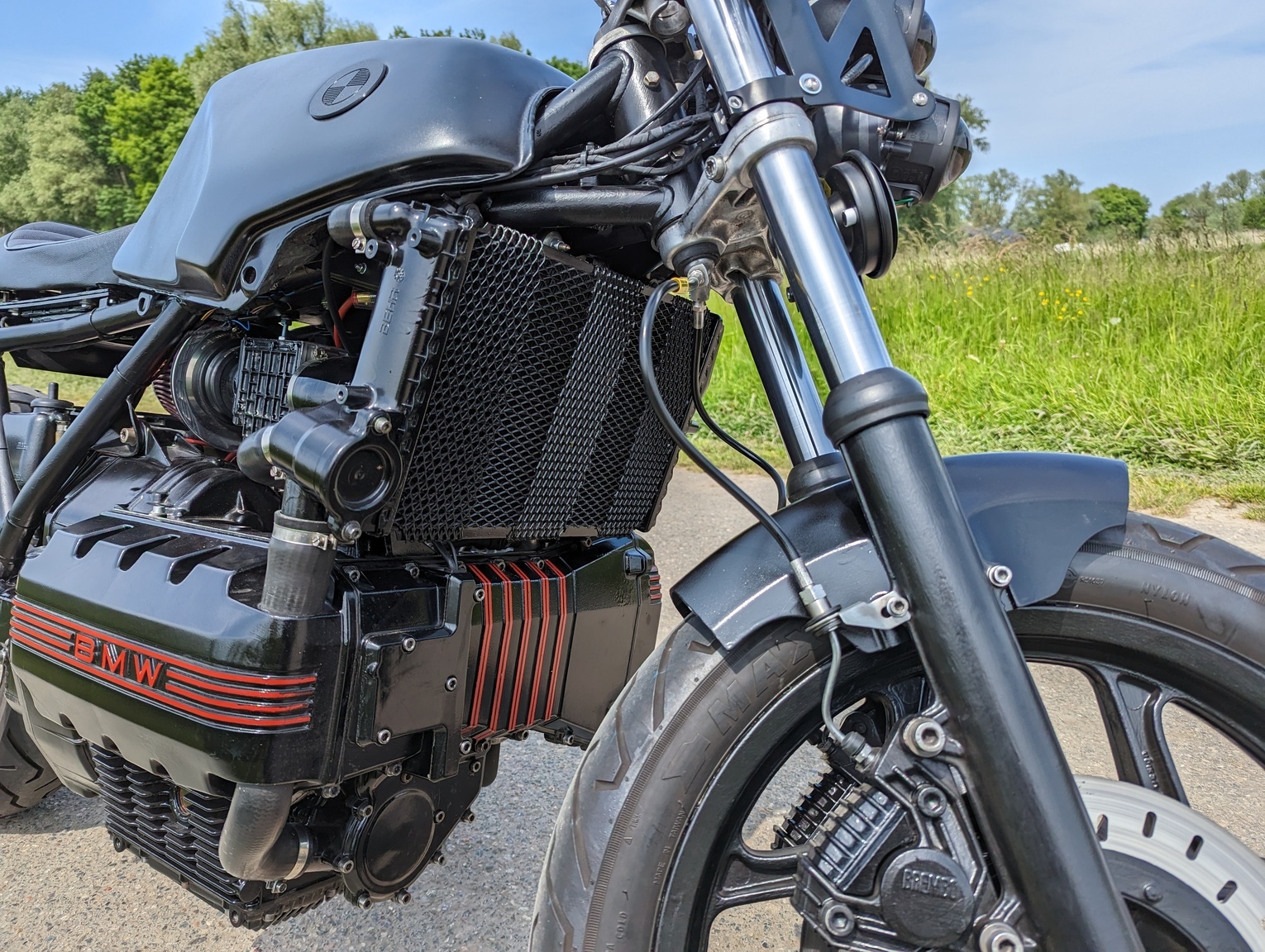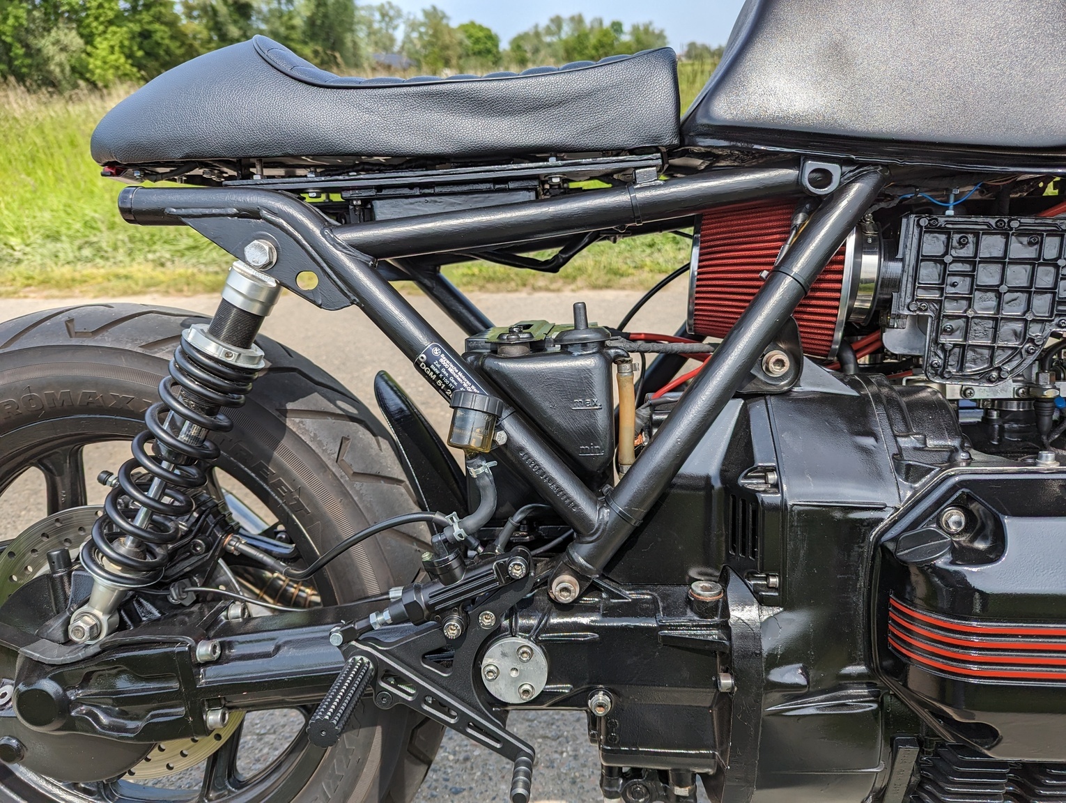 El filtro de aire y la carcasa originales (todavía presentes) se han reemplazado por un nuevo filtro de aire abierto en combinación con la carcasa del filtro de aire original. Bloque motor, caja de cambios, radiador, guardabarros y depósito pintados de negro (con detalles en rojo). Además, todas las demás partes también se han vuelto negras.