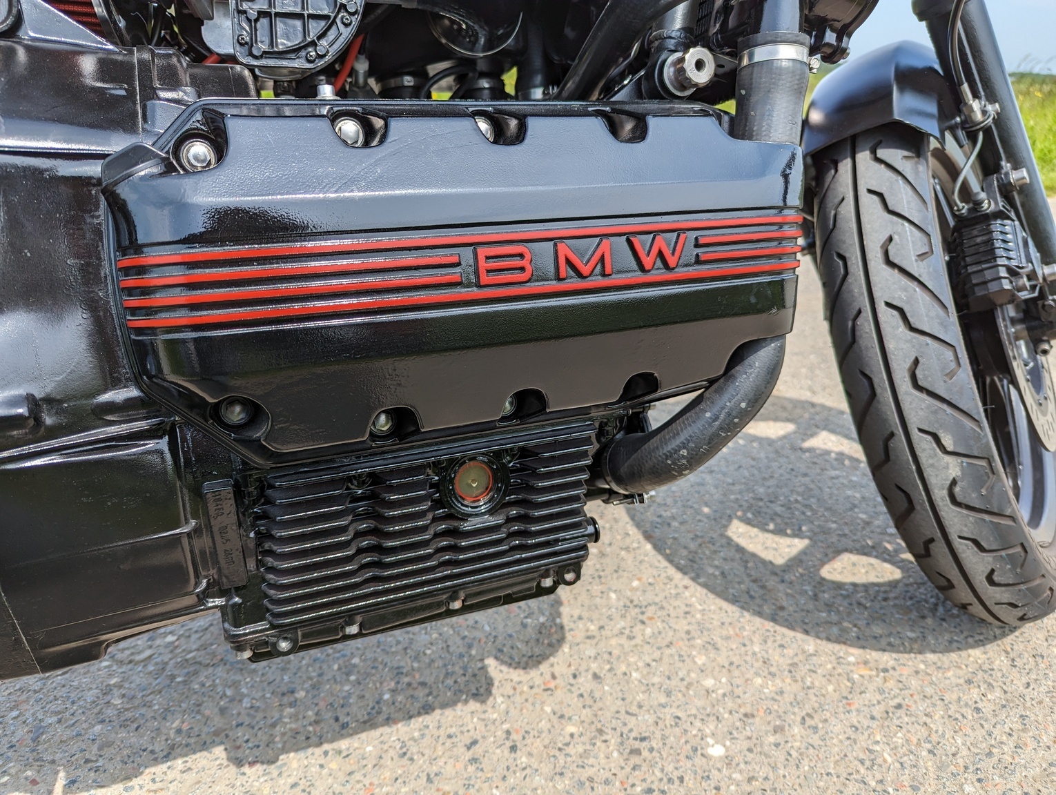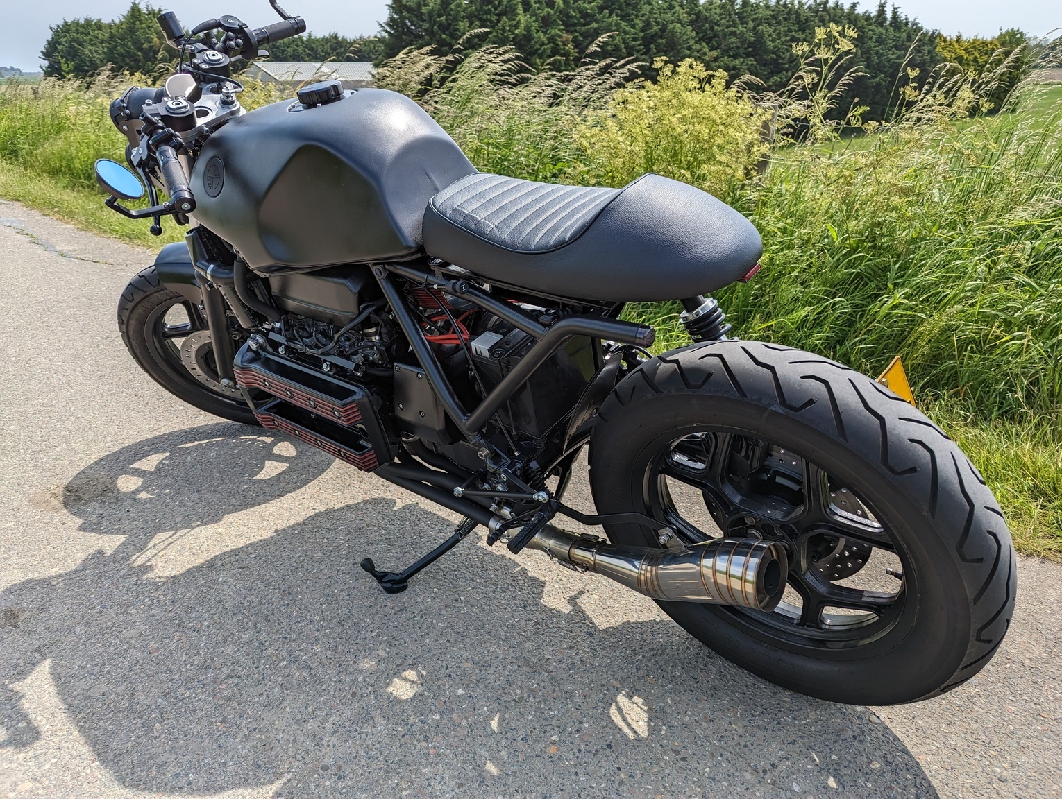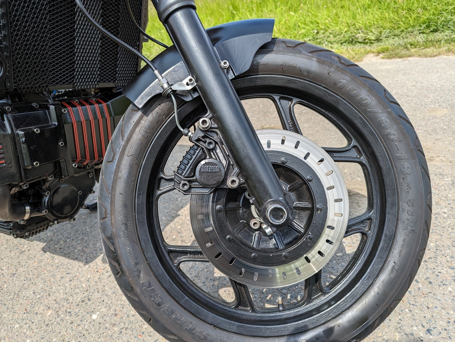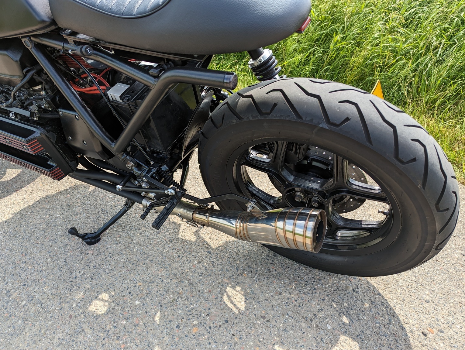 El filtro de aire y la carcasa originales (todavía presentes) se han reemplazado por un nuevo filtro de aire abierto en combinación con la carcasa del filtro de aire original. Bloque motor, caja de cambios, radiador, guardabarros y depósito pintados de negro (con detalles en rojo). Además, todas las demás partes también se han vuelto negras.