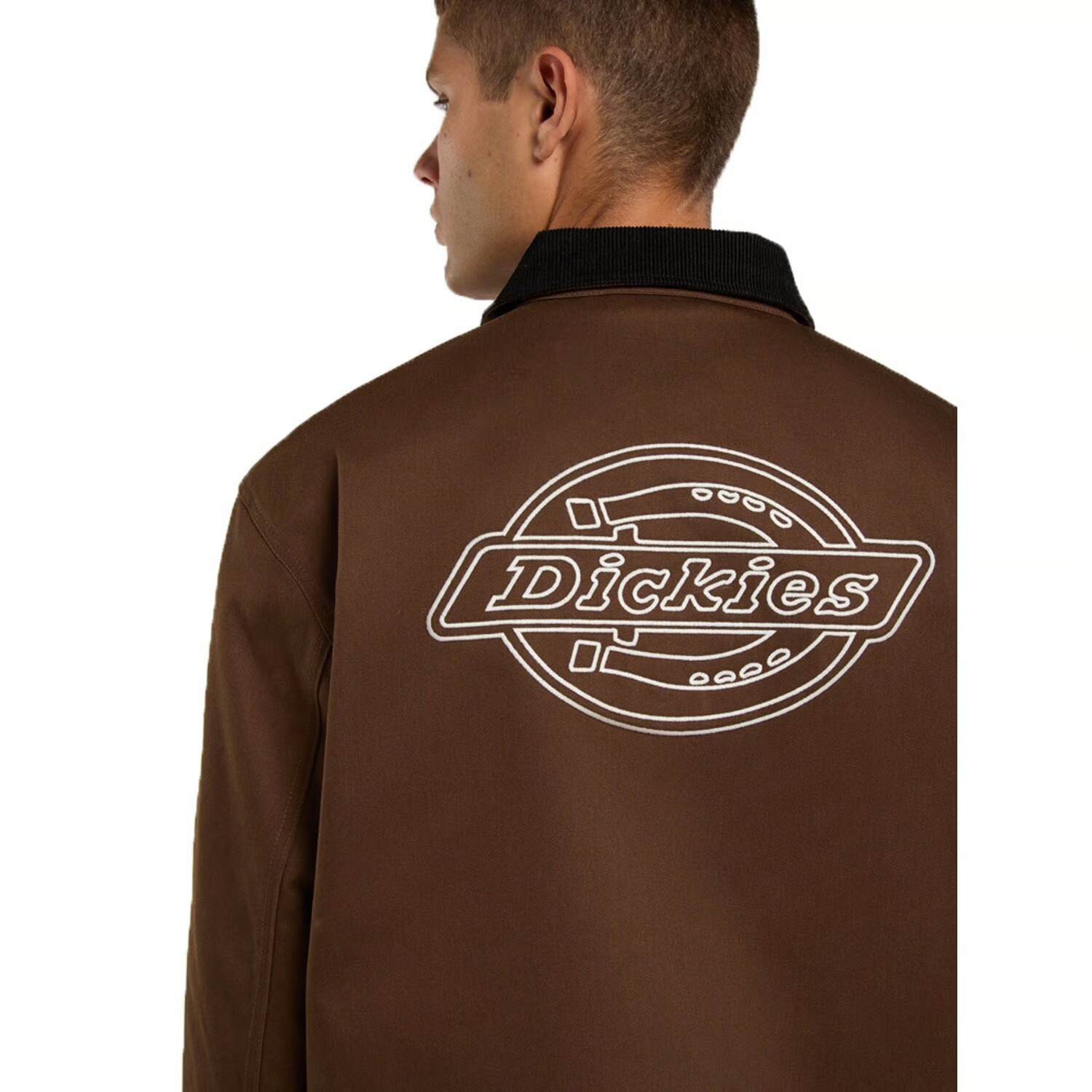 La chaqueta Dickies Union Barn es una chaqueta estilo entrenador de corte relajado y forrada, confeccionada en una resistente mezcla de poliéster y algodón de 230 g/m² con propiedades antimanchas. Presenta cuello de pana, bolsillos delanteros de parche con abertura angular y remaches metálicos, cierre central con broches, acolchado interior tipo cebolla, un gran logotipo Dickies bordado en la espalda y la icónica etiqueta tejida de Dickies en el bolsillo de parche. Una chaqueta clásica con la auténtica confección de Dickies.
