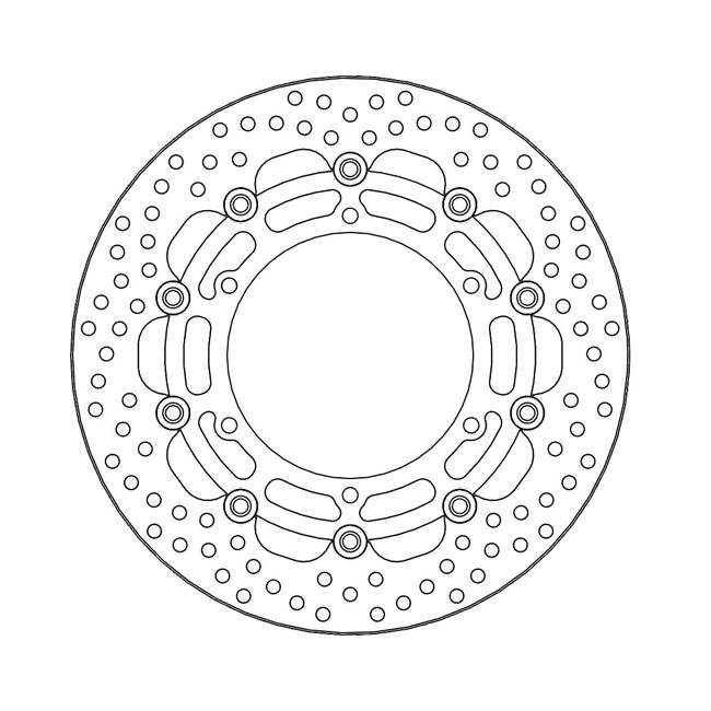 The Moto-Master HALO brake disc has a premium quality stainless steel outer ring allows for high performance braking while at the same time extremely durable. - Exact size and positioning of the venting holes ensures equal heat dispersion under high thermal stress while the brake pad contact surface is cleaned evenly. - The laser cut and precision grinded outer ring is fixed to a billet CNC machined aircraft aluminium carrier which is black anodized and laser marked. - Lightweight stainless steel floaters. - TUV approved.