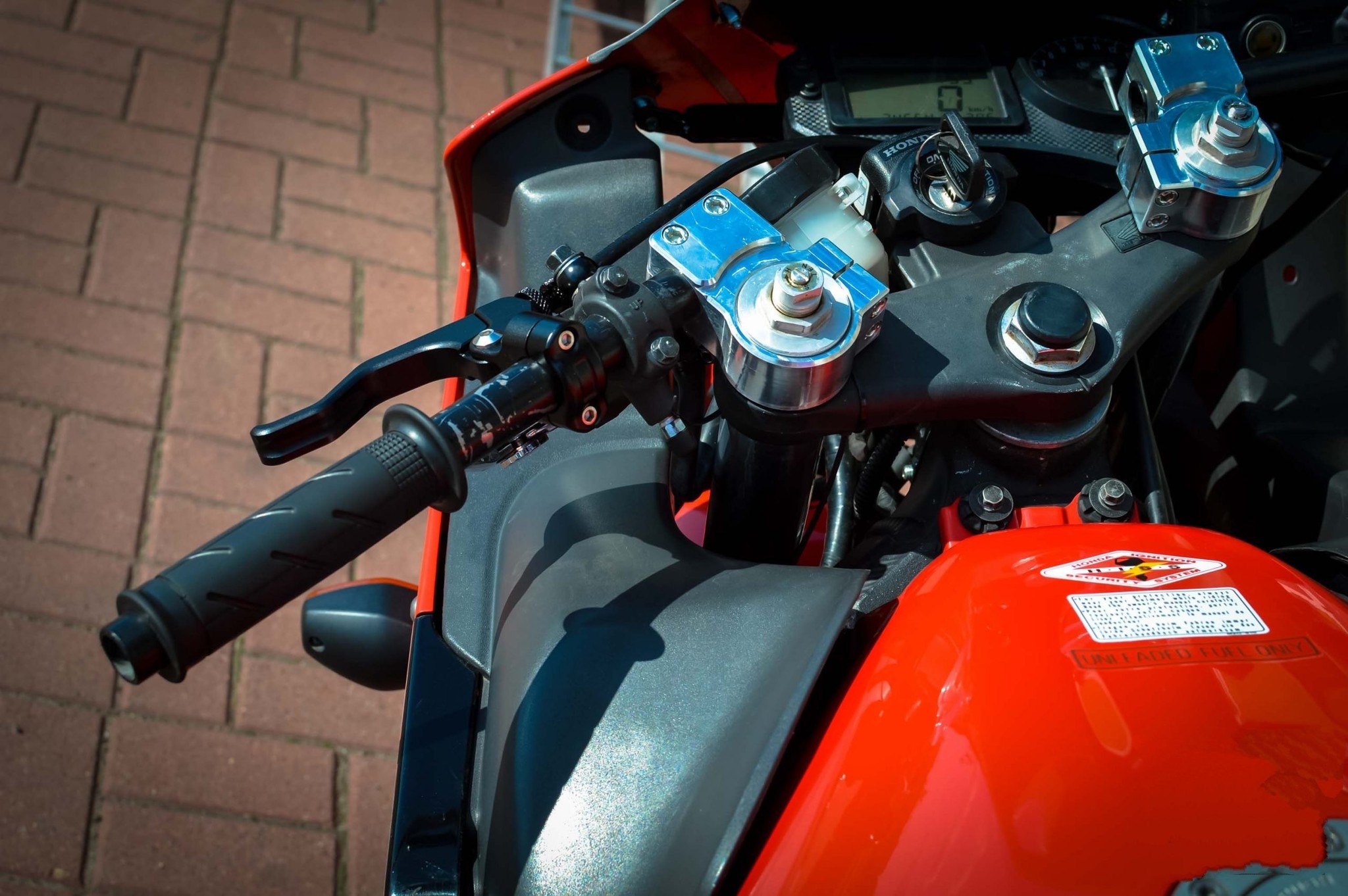 - Manillar CLIP-ON de aluminio regulable hacia arriba y hacia abajo.