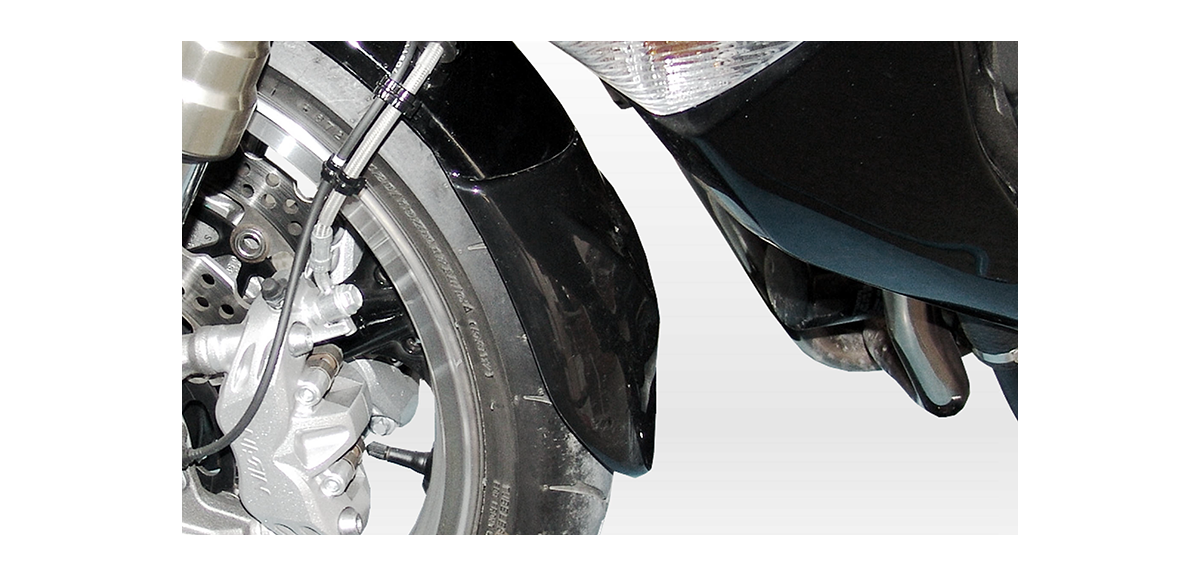 Adds extra length to the motorcycle's front mudguard to prevent water and mud from entering the exhaust pipes and in some cases rider's feet.