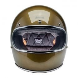 El Biltwell Gringo actualiza el estilo de competición de los años 60 para cumplir la normativa DOT y ECE R22.06 para motocicletas. El sudor es absorbido y evaporado por los puntos de contacto de Lycra de vellón cepillado en el forro de confort reemplazable/extraíble y las almohadillas de las mejillas.