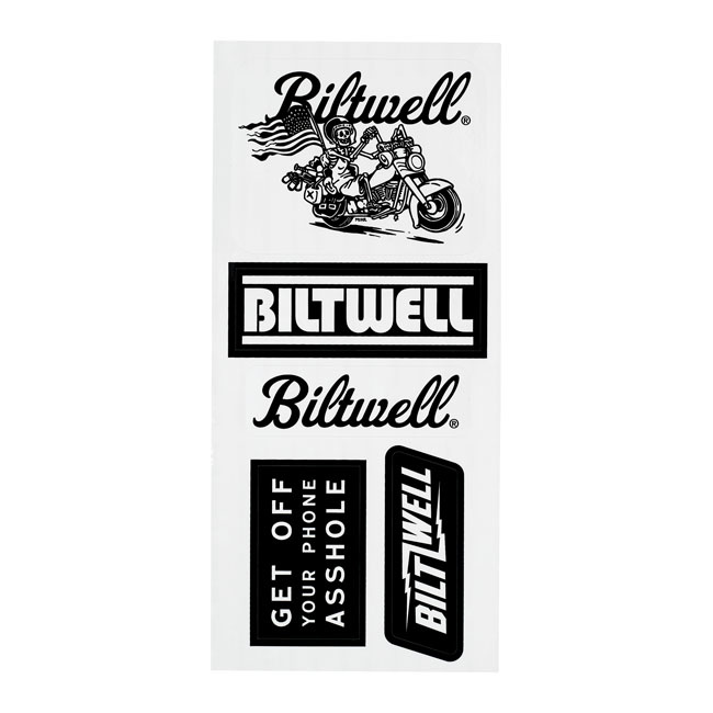 Si eres fanático de Biltwell, definitivamente necesitas tener estas calcomanías. Colócalas donde quieras, como en tu refrigerador, caja de herramientas o moto.