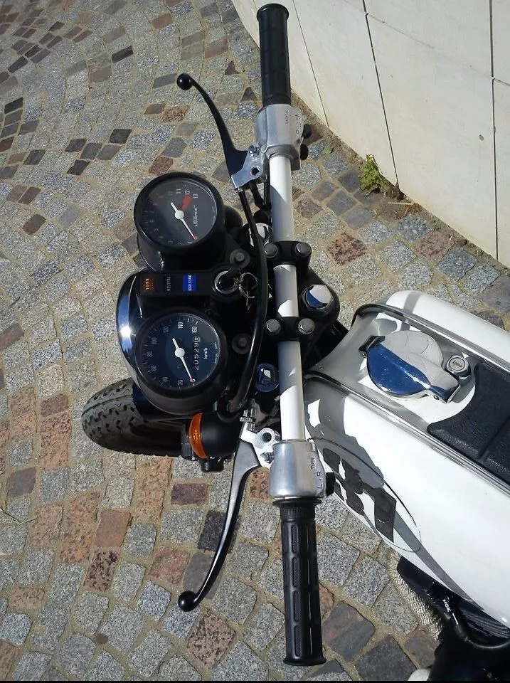 Honda CB 125 Twin del año 1982. Segundo dueño. Papeles en regla. Transformada en cafe racer. 25000 km. 6V. Depósito de gasolina de CB 250. Necesita limpieza de carburadores y batería nueva ya que hace tiempo que no la uso.