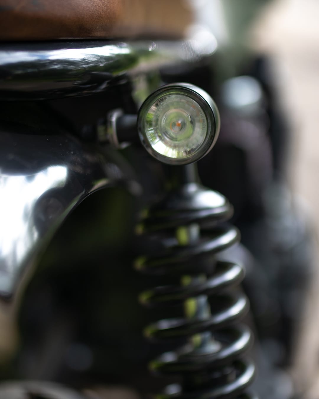 - iluminación: faro LED cafe racer 7'', luz trasera LED en el sillín, intermitente de humo en el extremo del manillar Koso y luces traseras LED.